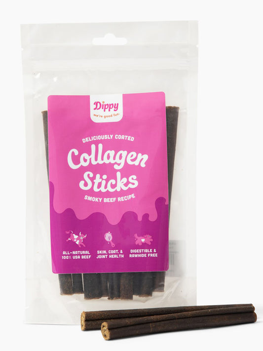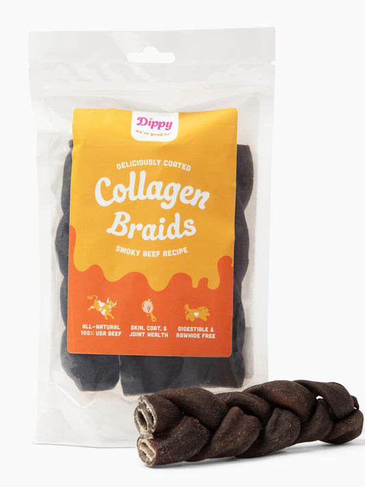 Collagen is from the inner layer of skin. Unlike traditional rawhide, which is the tough, outer layer, collagen is safe, easily digestible, and has many other benefits.